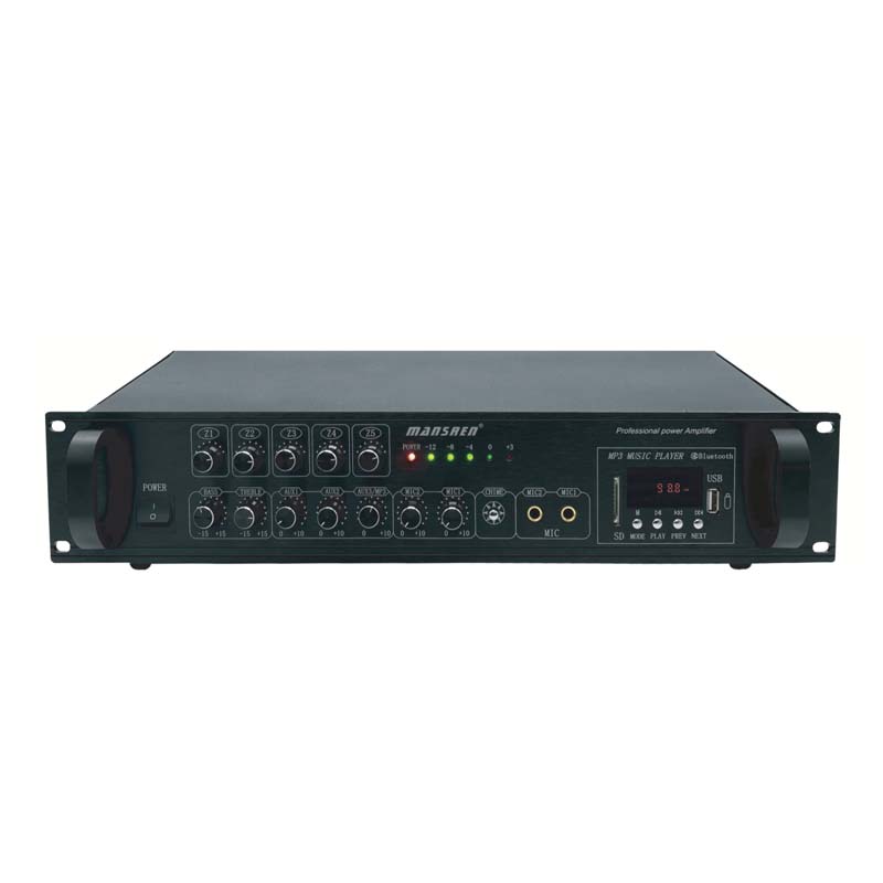 Có chức năng phát lại USB/Bluetooth/FM, có thể cắm USB, điều khiển từ xa để phát bất kỳ bài hát nào, phát bài trước/sau, tạm dừng, dừng, v.v. (hoặc chọn thao tác bằng nút trên bảng điều khiển).