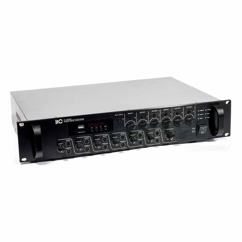 Bộ khuếch đại kèm trộn 6 vùng công suất 240W ITC TI-2406S là một thiết bị đa chức năng, tích hợp amply và bàn trộn dành cho hệ thống âm thanh thông báo và nhạc nền. Với khả năng xử lý và phân phối tín hiệu đến 6 vùng độc lập, sản phẩm là lựa chọn lý tưởng cho các công trình như trường học, bệnh viện, văn phòng, trung tâm thương mại… nơi cần phát thông báo hoặc nhạc nền theo từng khu vực.