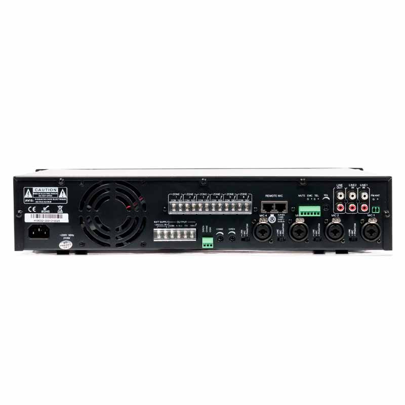 Đầu ra linh hoạt: hỗ trợ cả điện áp cao phân vùng (70V / 100V) và tải trở thấp (4-16 Ω) giúp dễ dàng kết nối với loa phân vùng.