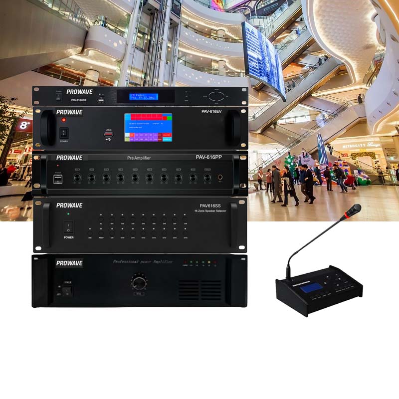 Prowave PAV được sử dụng để phát thông báo chung, thông báo khuyến mãi, hướng dẫn khách hàng và phát nhạc nền. Khả năng chia vùng giúp quản lý âm thanh theo từng tầng, từng khu mua sắm, đảm bảo âm lượng phù hợp và không gây ồn ào, nâng cao trải nghiệm khách hàng.