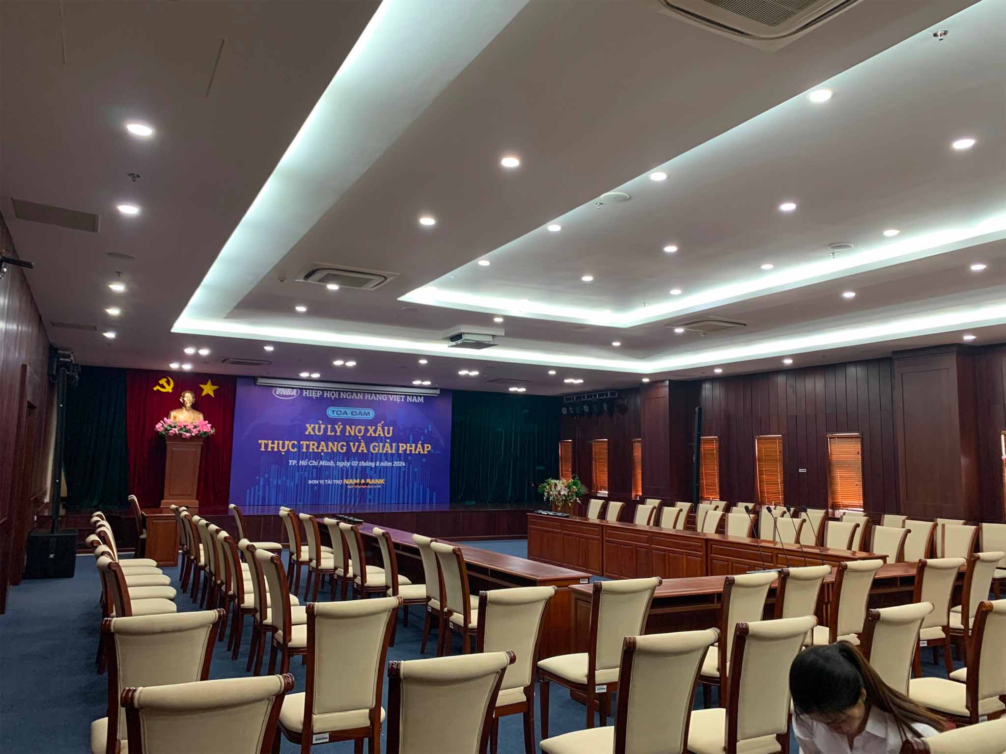 Hệ thống được trang bị micro cổ ngỗng không dây cao cấp, bộ thu sóng ổn định cùng ampli và loa hội nghị chất lượng, giúp người phát biểu có thể sử dụng linh hoạt mà không bị giới hạn bởi dây nối. Âm thanh được xử lý sạch, trong trẻo và tự nhiên, đáp ứng hoàn hảo cho các cuộc họp, báo cáo hay hội nghị nội bộ của ngân hàng.