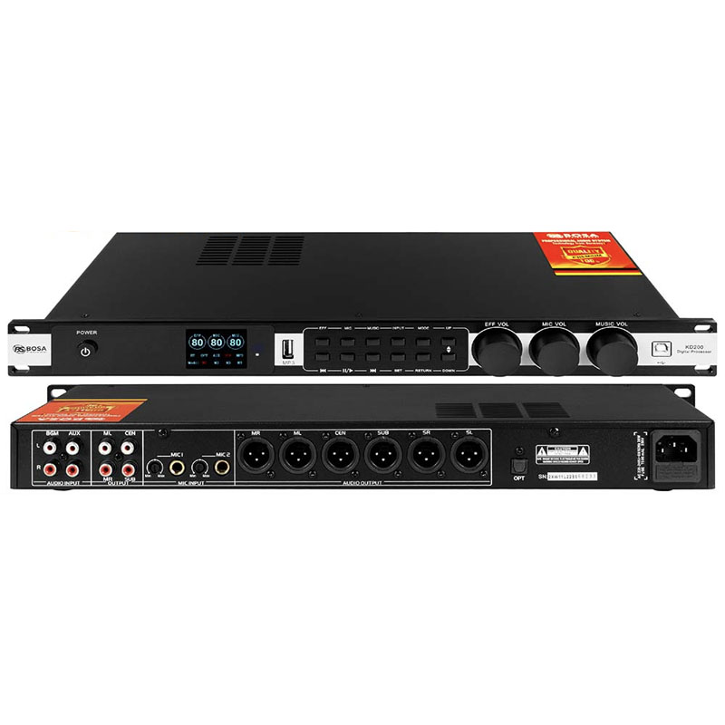 Một trong những ưu điểm nổi bật của Bosa KD200 là hệ thống xử lý tín hiệu DSP mạnh mẽ, hỗ trợ chỉnh echo, reverb và equalizer linh hoạt. Người dùng có thể dễ dàng tinh chỉnh các chế độ theo gu âm nhạc riêng, từ hát karaoke cho đến nghe nhạc và xem phim. Sự ổn định và khả năng chống nhiễu vượt trội giúp âm thanh luôn rõ nét, sống động.